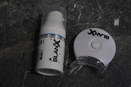 Studio : Coswell S.p.A. Publisher : Coswell S.p.A. Binding : Misc. Product Description DESCRIPTION: Bleaching cosmetic set series II. BlanX White Shock is produced on the basis of the patented technology ActiluX, containing active ingredients that have bleaching effects amplify due to exposure to natural or LED lights. With this kit will make your teeth bright white after just a few applications. The system whitens your teeth thanks to the technology ActiluX®, which contains inorganic, biocompatible ActiluX® crystals, to whiten use natural light and do not harm the tooth enamel. Exposure to light triggers an antibacterial response in the mouth, through which the ActiluX® crystals destroys the membranes of bacteria that are often responsible for the formation of plaque and bad breath. Bleaching cosmetic set series II. BlanX White Shock forms on teeth invisible protective barrier, which helps to remove spots active yellowing of the teeth. LED light activator acts as an intensive accelerator photocatalytic reaction of the bleaching process. The product does not contain peroxide, SLS, propylene glycol, titanium dioxide or parabens. A bleaching substance is activated each time the light irradiation, so become brighter teeth practically for a whole day. A thin layer of coverage in addition creates a cleansing effect, "the lotus flower", when it reduces the ability of dental plaque to bind to the surface of the teeth, and therefore is the plaque easily washed by using the self-cleaning ability of saliva. Enamel becomes a brighter and more radiant. Thanks to its unique technology and special ingredients quickly removes the discoloration from the surface of the teeth, and give them once again the natural light shade. Effects: significantly whitens teeth; strengthens enamel; does not damage teeth. 0