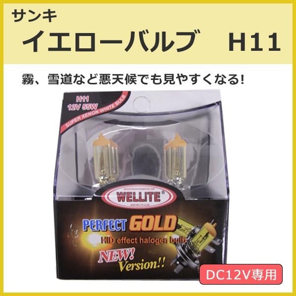 霧、雨、雪など悪天候に最適なイエローバルブです。 製造国:韓国 素材・材質:耐熱ガラス 仕様:DC12V専用バルブ形状:H11定格電力:55W ※サプライヤー直送品 ご注文後7~8営業日後の出荷となります【商品名】サンキ イエローバルブ H11