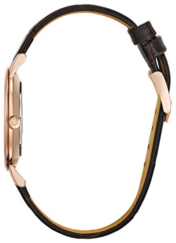 mineral glass, croco-embossed brown leather strap with three-piece buckle closure, and water resistance to 30 meters