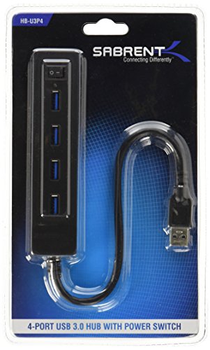 Sabrent 4 Port Portable USB 3.0 Hub with Power Switch for Ultra Book, MacBook Air, Windows 8 Tablet PC – Black (HB-U3P4)