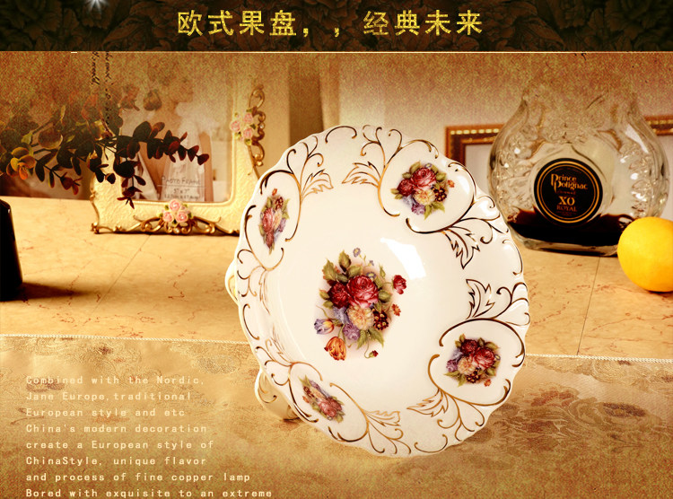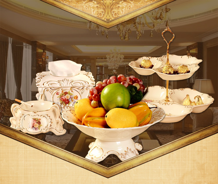 创意奢华摆件陶瓷水果盘茶几客厅复古餐桌果盆结婚