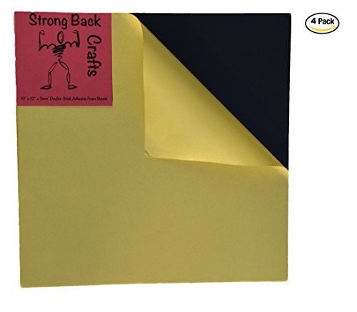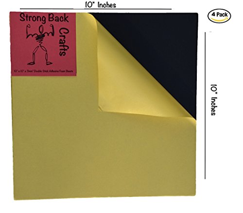Double Sided Adhesive Foam Sheets 10in x 10in (4pack)--Black, 3mm thick--Large 2-sided sticky adhesive foam pads