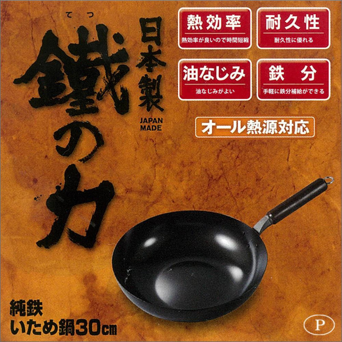| 耐久性に優れ油なじみが良い純鉄いため鍋です。熱効率が良く素早く調理できます。 |
