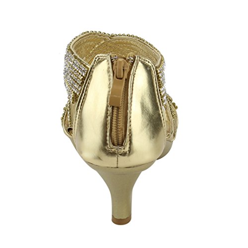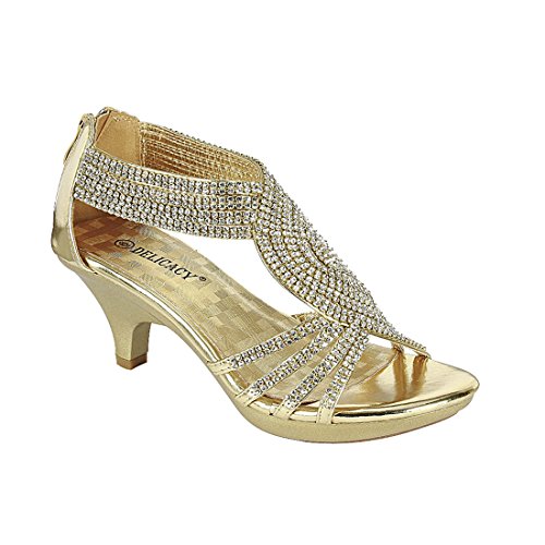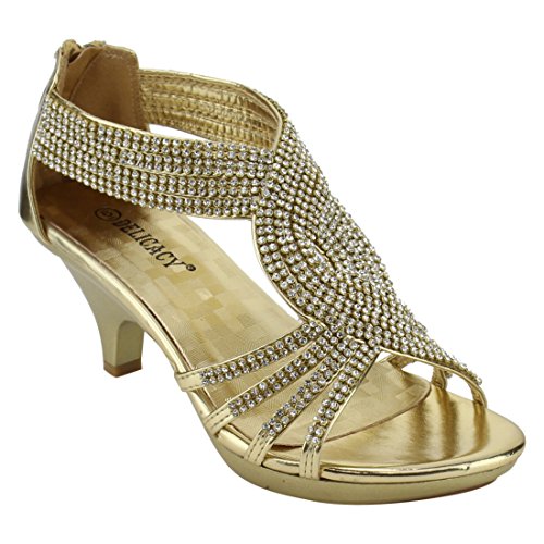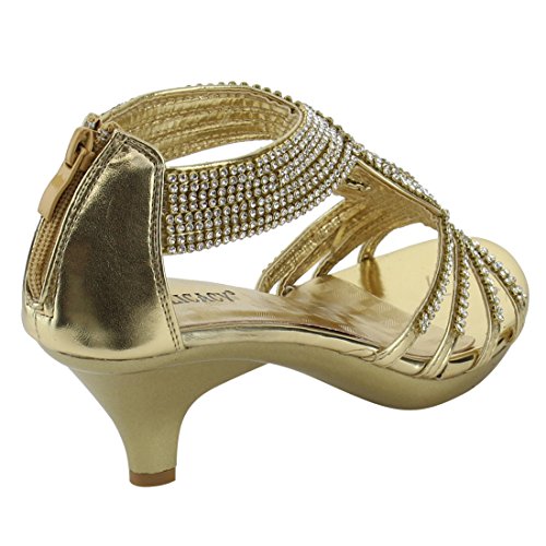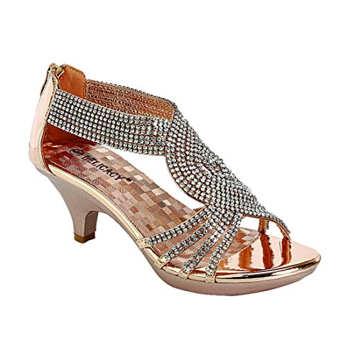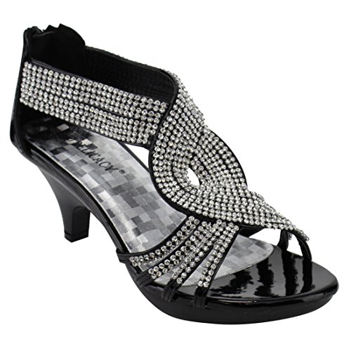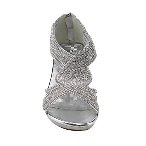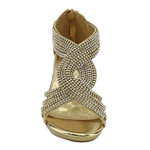 Product DescriptionDouble your evening impact with these sandals. Design with rhinestone details, criss cross straps, back zip up closre, platform with wrapped kitten heel, and lightly cushioned footbed.0