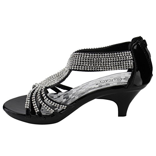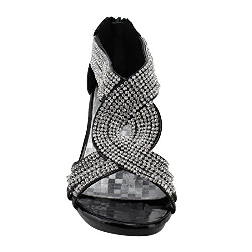 FOREVER FP43 Women's Rhinestone Back Zipper Platform Wrapped Kitten Heel Sandals