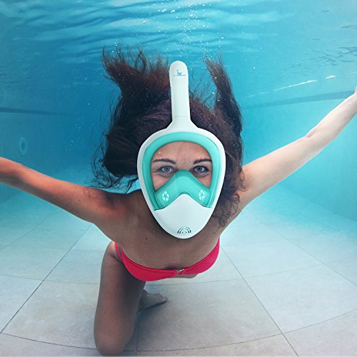 Full Face Snorkel Mask Set for Adults and Children, Easybreath Snorkeling Gear with 180 Sea View with Universal Waterproof Case, Camera Mount and Anti-Fog Spray (Blue, L/XL)