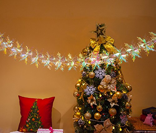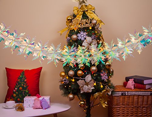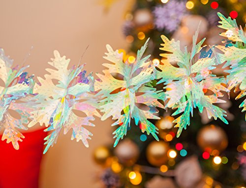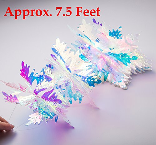 - ❤ Snowflake Christmas hanging decorations, reflective material make whole garland sparkling, glittering, and colorful. Add more happy and beautiful atmosphere to your party with family and friends.