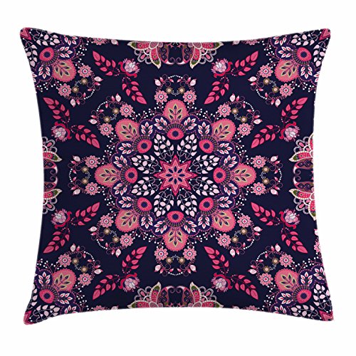 Ethnic Throw Pillow Cushion Cover by Ambesonne, Ethnic Spring Nature Blossoms Abstract Traditio...