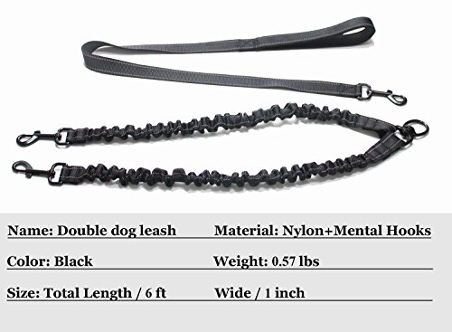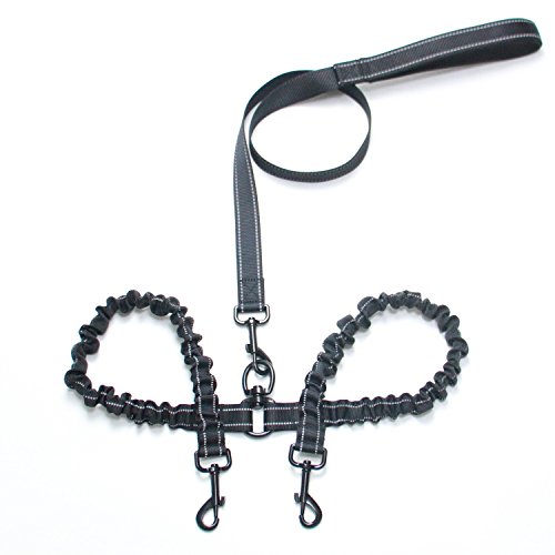 Double Dog Leash-No Tangle Dual Bungee Dog Walking Leash Reflective Bungee Lead for Two Dogs(5-6ft)
