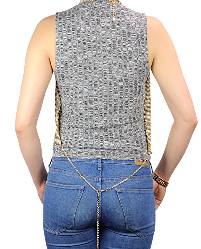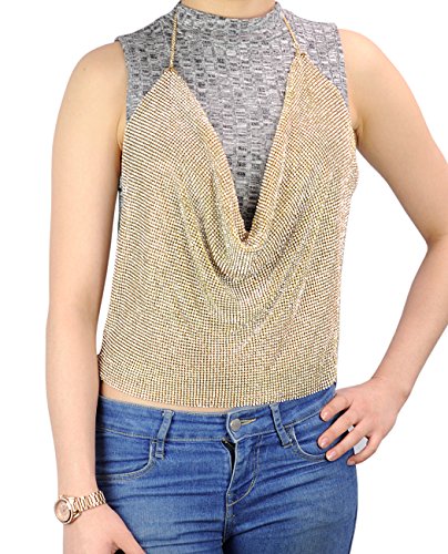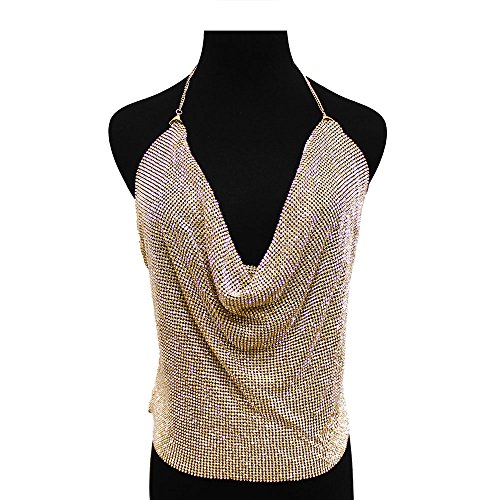 Product DescriptionWomen's Sexy Body Jewelry Stone Stud Mesh Chain Backless Halter Top , Gold-Tone0