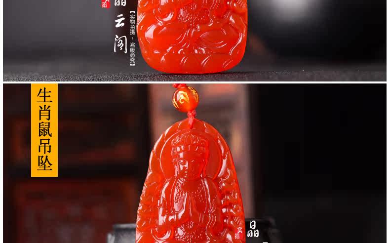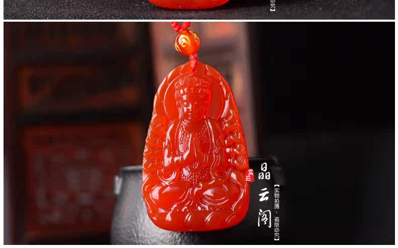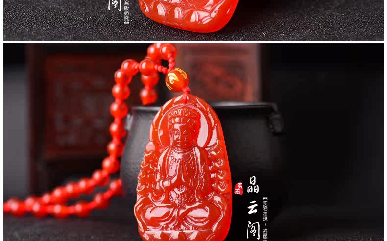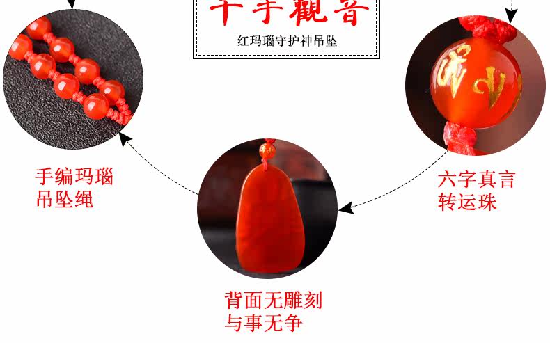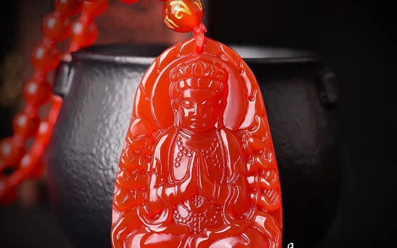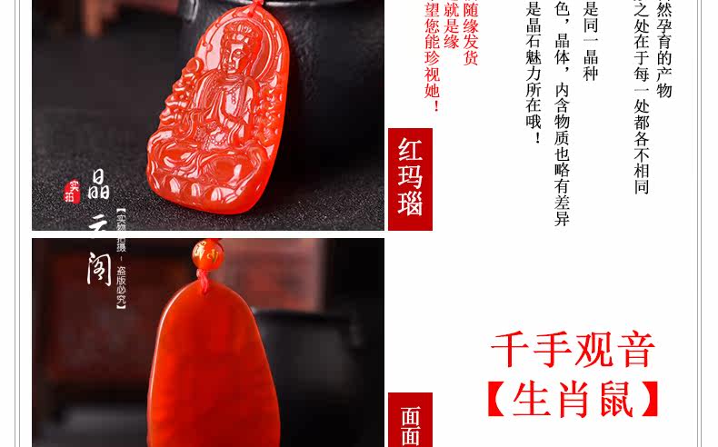 开光天然红玛瑙千手观音菩萨吊坠 生肖属鼠本命佛男女士项链挂件