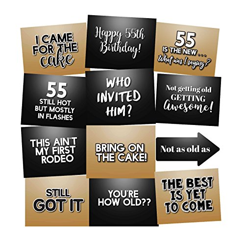 55th Birthday Photo Booth Props Accessories Kit Party Signs - Set of 12