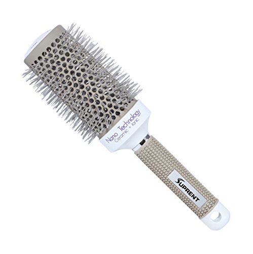 SUPRENT NANO THERMAL CERAMIC & IONIC ROUND BARREL HAIR BRUSH, 2 INCH, FOR HAIR DRYING, STYLING, CURLING, ADDING HAIR VOLUME, LIGHT GREY AND WHITE COLOR