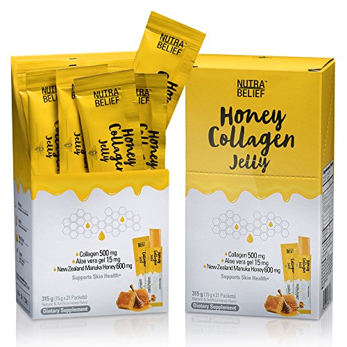 Nutra Belief Daily Edible Collagen Jelly Supplement, Better Than Gummies, Boosts Natural Skin Growth Elasticity and Revitalization With Aloe Vera Gel and Manuka Honey
