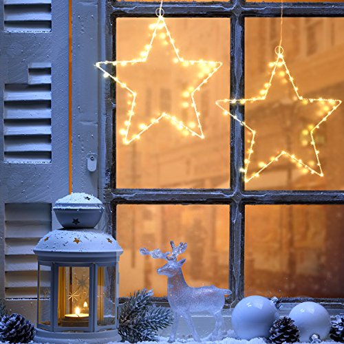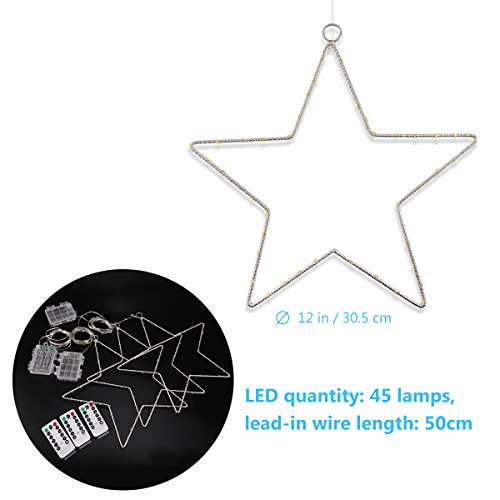 BEAUTIFUL DECORATIVE LIGHTS FOR CHRISTMAS AND MORE. These big (12" wide, 12" high) stars are wrapped around with 45 warm white LEDs for a great sparkling effect.
