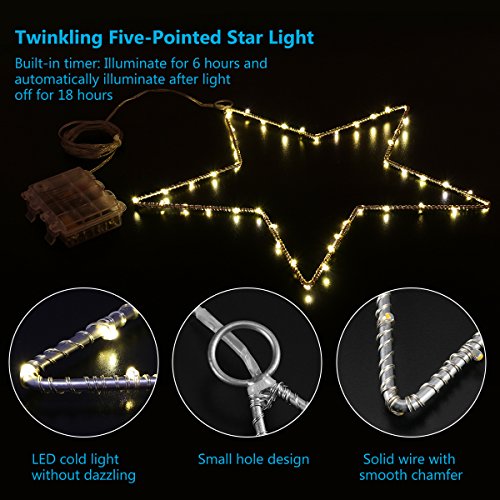 3 Pack LED Christmas Star Lights, YUNLIGHTS 45 LEDs Waterproof Copper Wire Lights, Battery Operated, Warm White