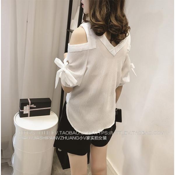 肩がでるセクシーなシャツ☆Vネックもセクシーです♪袖のリボンもかわいい一枚です!【カラー】ピンク、ホワイト、ストライプ【サイズ】【S】胸囲88/肩幅33/着丈前55後59/袖丈30(cm)【M】胸囲92/肩幅34/着丈前56後60/袖丈31(cm)【L】胸囲96/肩幅35/着丈前57後61/袖丈32(cm)※製品により多少の誤差が生じる場合がございます。【素材】綿・ポリエステル 【ご使用上の注意】着用に問題のない製法のほつれ、商品の性格上、開封された商品・一度でも着用されました商品の返品・交換は一切お受け致しません。イメージと違う、サイズが合わない等の理由での返品は一切受け付けておりません。購入後のサイズ交換は対応しておりません。生産終了後すぐ発送しているため匂いがある場合がございます。ご了承ください。【生産国】made in china※商品はご注文を頂いてから2週間前後の到着となります。