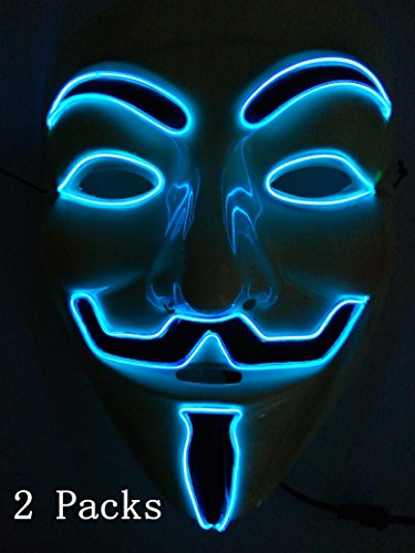- 2 Packs in Package!El Wire Mask V for Vendetta, Anonymous Led party Mask for Party,Halloween,Christmas,skating at night and many sports, halloween, costume parties, masquerades, mardi gras, rave festivals, carnivals, gifts, and more