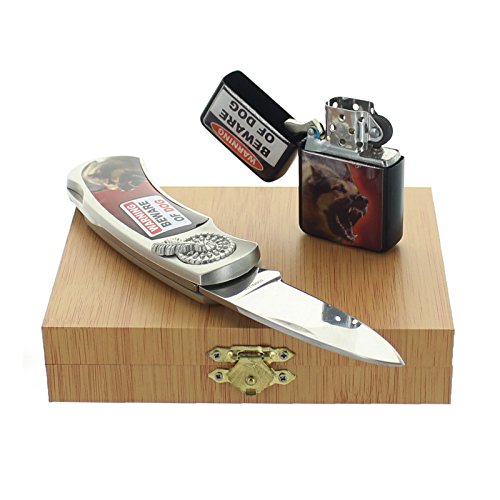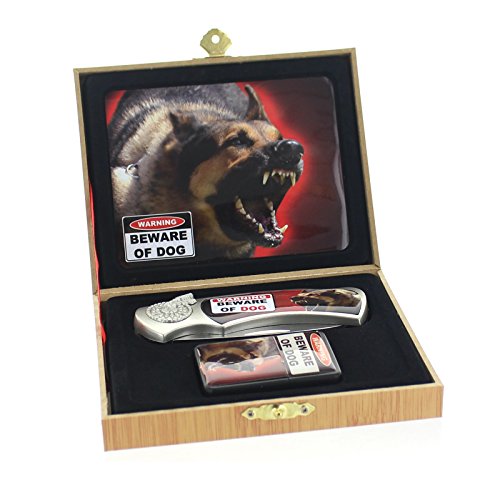 (SGE)/Household Supplies/Lighters Matches/DIRECT FROM USA/eSmart Lighter and Knife Gift Set With Multiple Themes (Beware of Dog)
