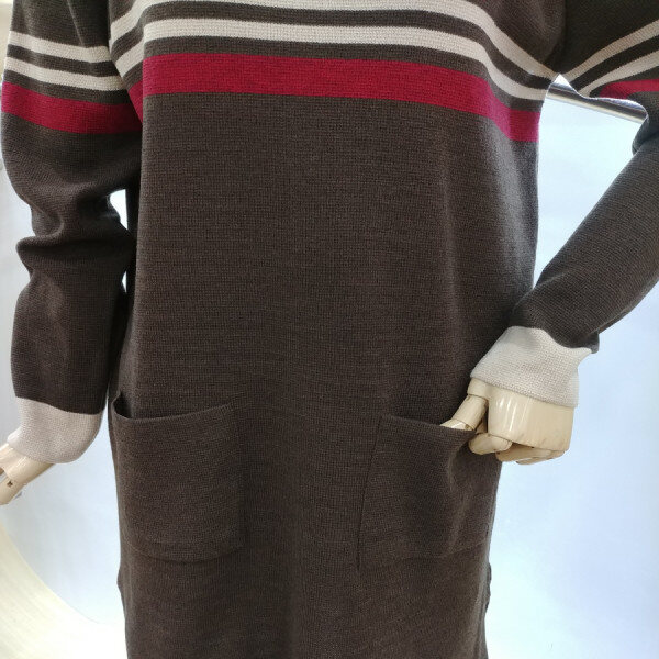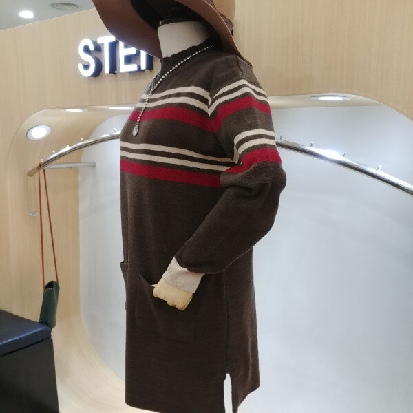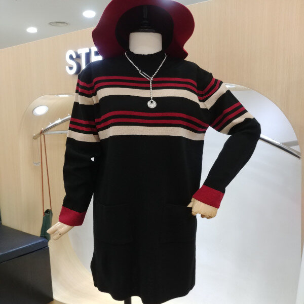 스트라이프 배색 패턴과 포켓 디테일이 포인트인반목 니트원피스예요깔끔하게 떨어지는 핏감으로캐주얼하게 입기 좋은 스타일베이직하면서도 러블리한 디자인으로자켓이나 코트.가디건등에포인트룩으로 매치하셔도잘어울리는 아이테이예요