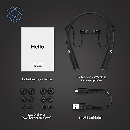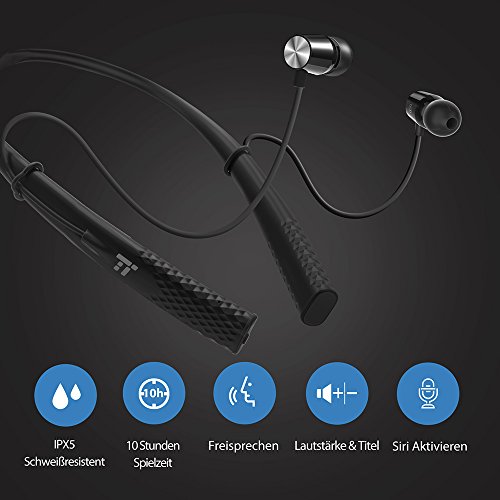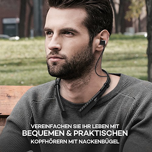 Bluetooth Kopfhorer TaoTronics Nackenband Silikongel-Nackenbugel mit Magnetischen Ohrhorern CVC6.0 Gerauschunterdruckung, Highfidelity Stereo Sound, IPX5 Wasserresistent, 10 Stunde