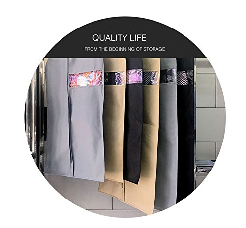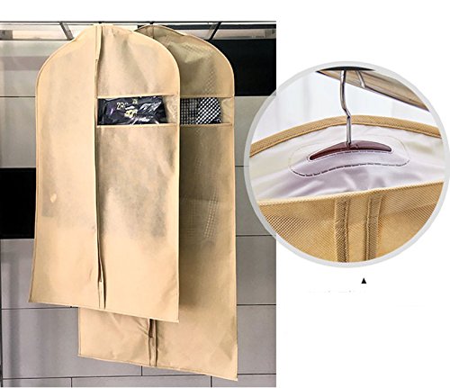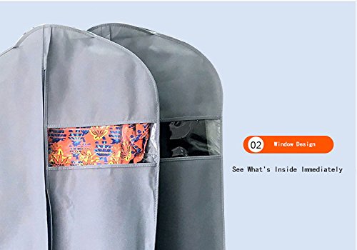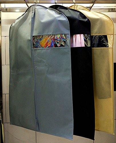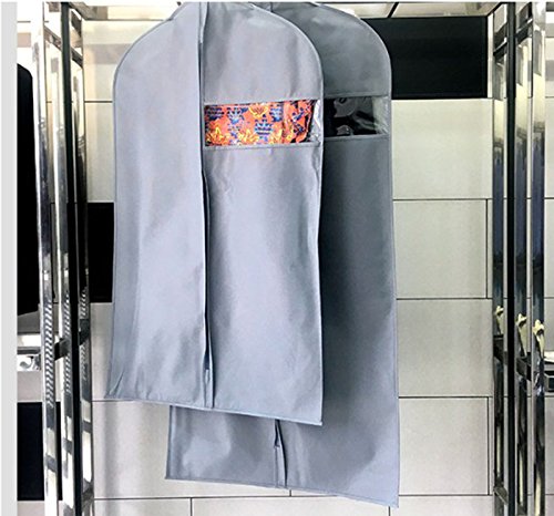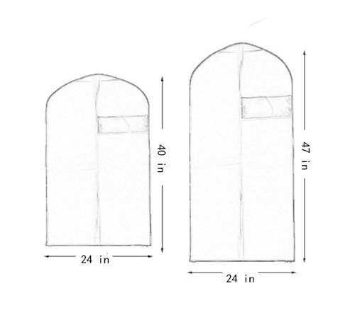 -. Feature : TOP QUALITY - Water resistant garment bag covers with sturdy zip to last a lifetime. / FEELS LIKE LINEN - Luxurious, breathable non-woven fabric looks and feels like linen for extra comfort, cushion, and style, great gift for men or women. / SEE WHAT'S INSIDE - Through clear window instantly know if its your skirt, dress or dance costume. / HOME AND TRAVEL - Light & portable for hanging in the closet or pack in lage, folding carry-on, rolling suit case; No more hassles getting through airport security while travelling; Simple, hangs easily, holes for hangers & handles in your car; Lasts longer than dry cleaning bags. / COMBO SIZE &DIMENSIONS- 24 inch w rounded shoulders, 40 in L regular, 47 in L long, mylar vinyl & plastic.