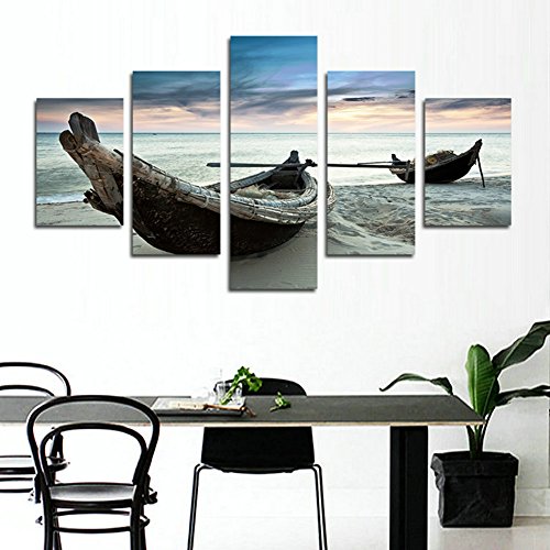 -. Title : H.COZY 5 Piece art abstract canvas sea boat oil painting wall art home decoration canvas P.R.Ints (No Frame) Unframed far107 50 inch x30 inch