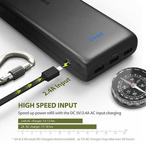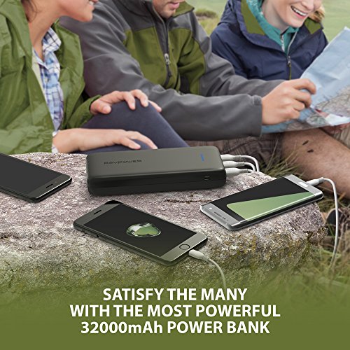 32000mAh for 11 Days of Use: Over weeklong power to charge an iPhone 7 for over 11 times, Galaxy S7 Edge for 6 times, iPad mini for 5 times & iPad Pro for 2 times. Restricted on aircrafts