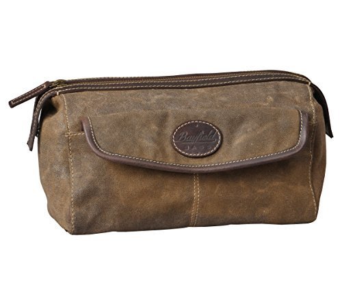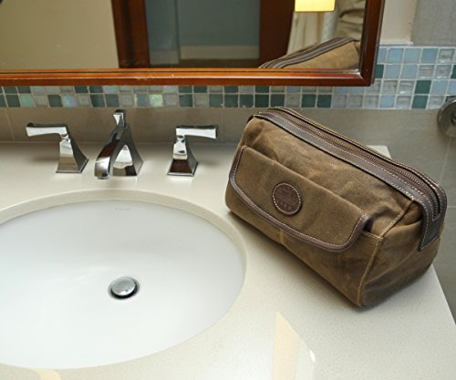 Men's Canvas & Leather Toiletry Bag by Bayfield Bags - Vintage Retro-Look Waxed Canvas Large (12x7x7) Travel Dopp Bag
