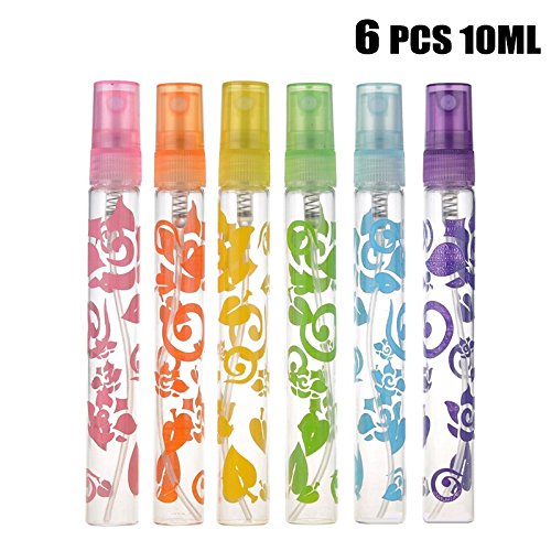 KeyZone 6Pcs 10ml Colored Cut Glass Perfume Atomizer Refillable Empty Bottles