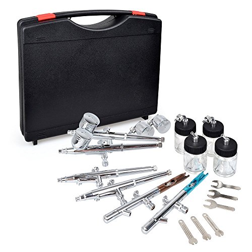 StarsTech Dual-Action Gravity Feed & Siphon Feed Airbrush Kit (6 Airbrush Guns & 4 Airbrush Siphon Bottles & 2 Metal Cups)
