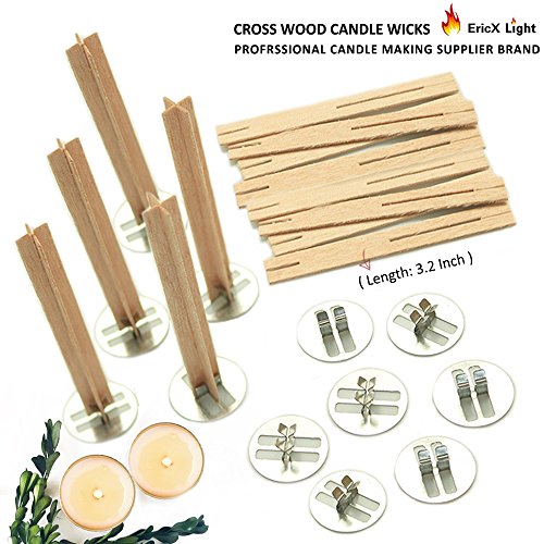 EricX Light 3.2 inch Cross Wooden Candle Wicks, 20 Sets, Wood Candle Wicks for Candle Making, Candle DIY