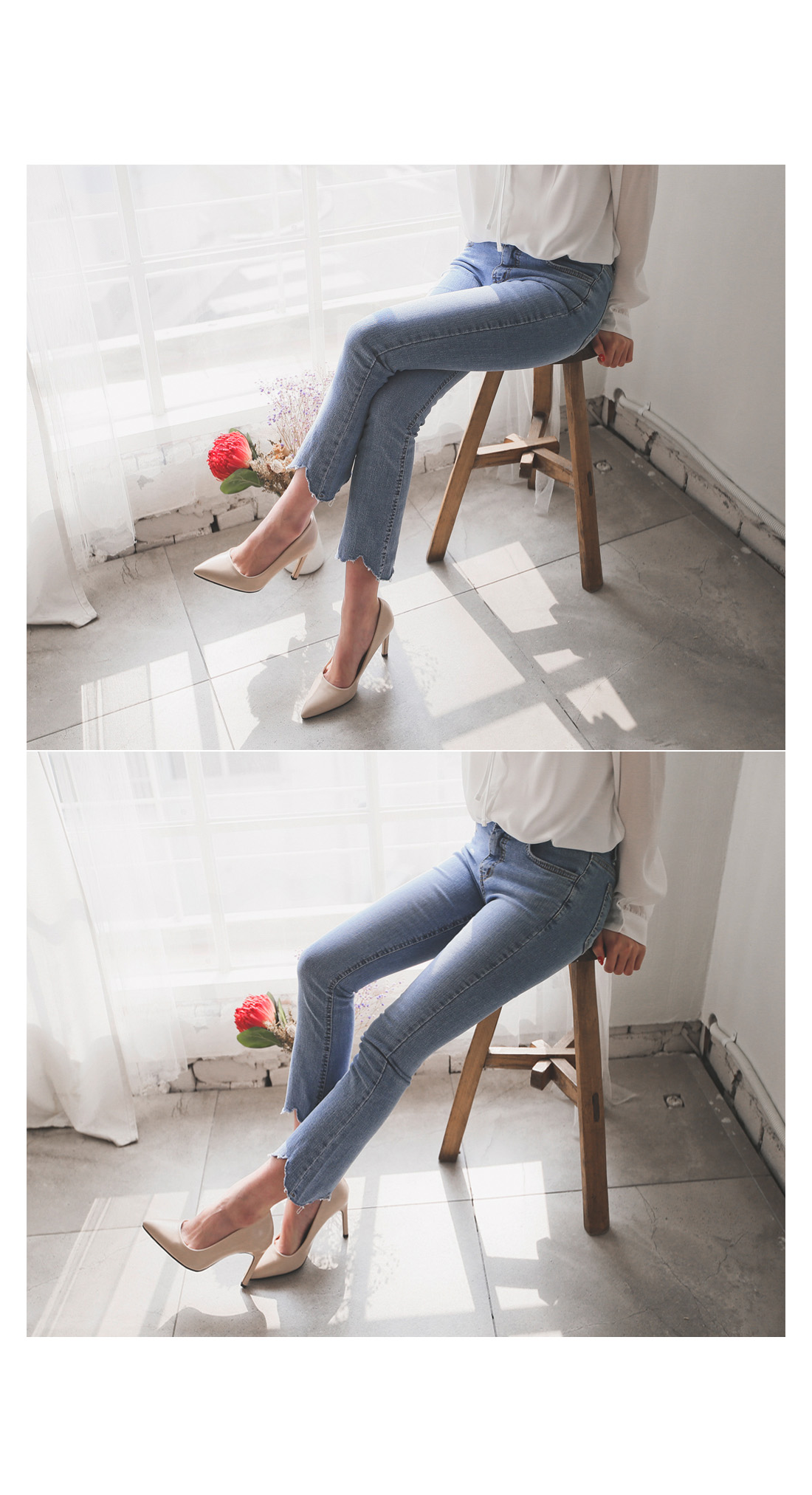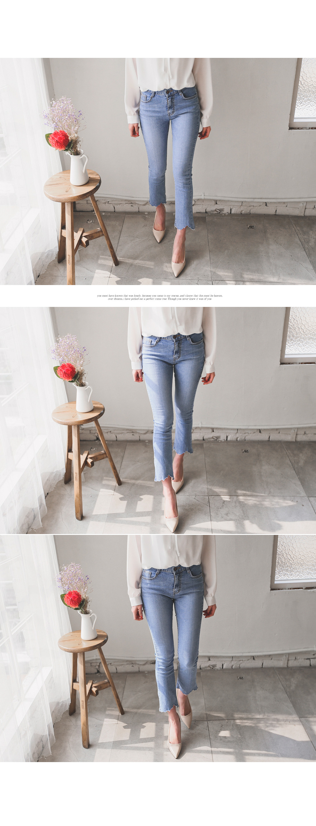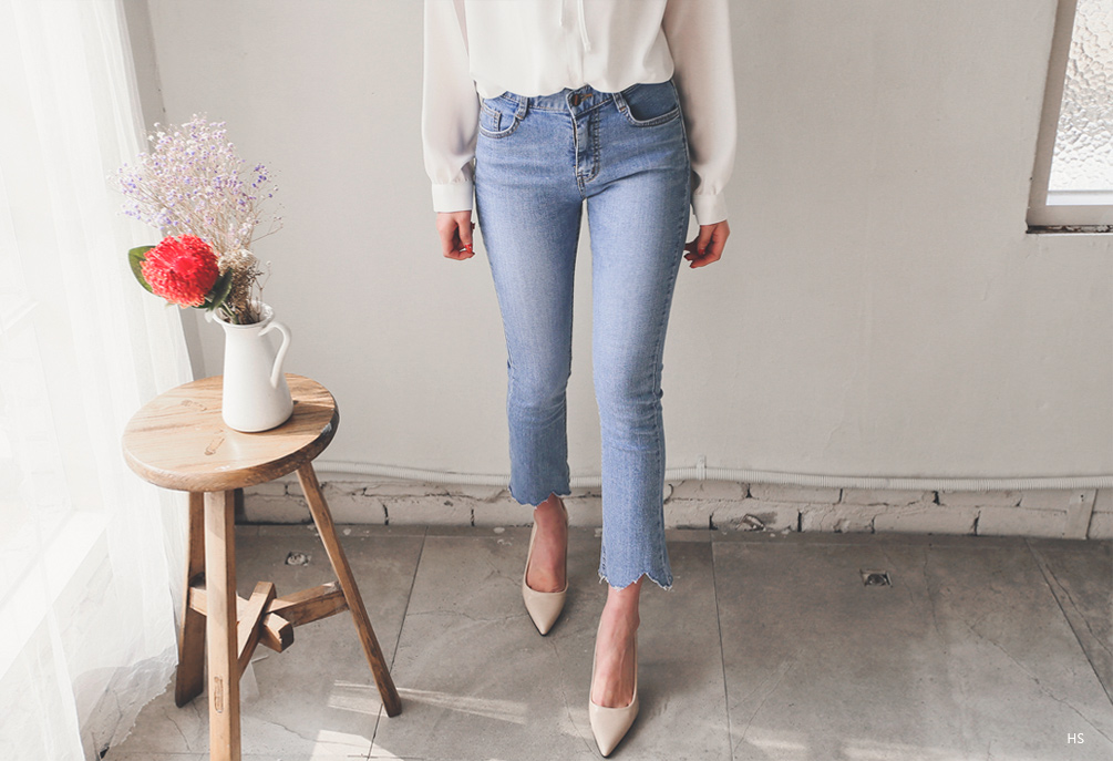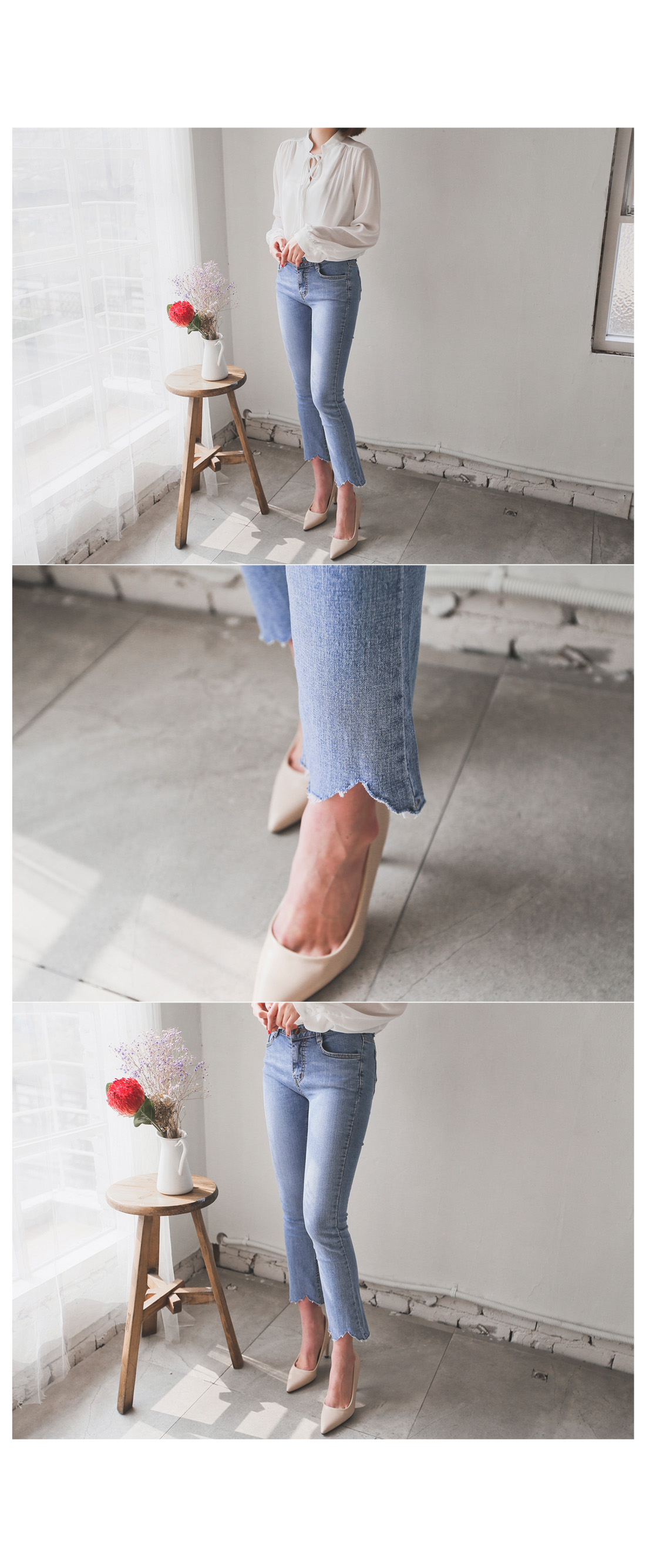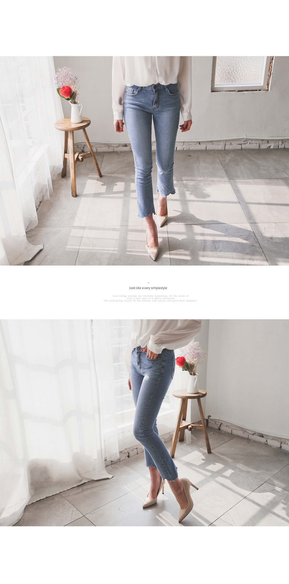 # pr8197 밑단엣지 컷팅슬림데님팬츠