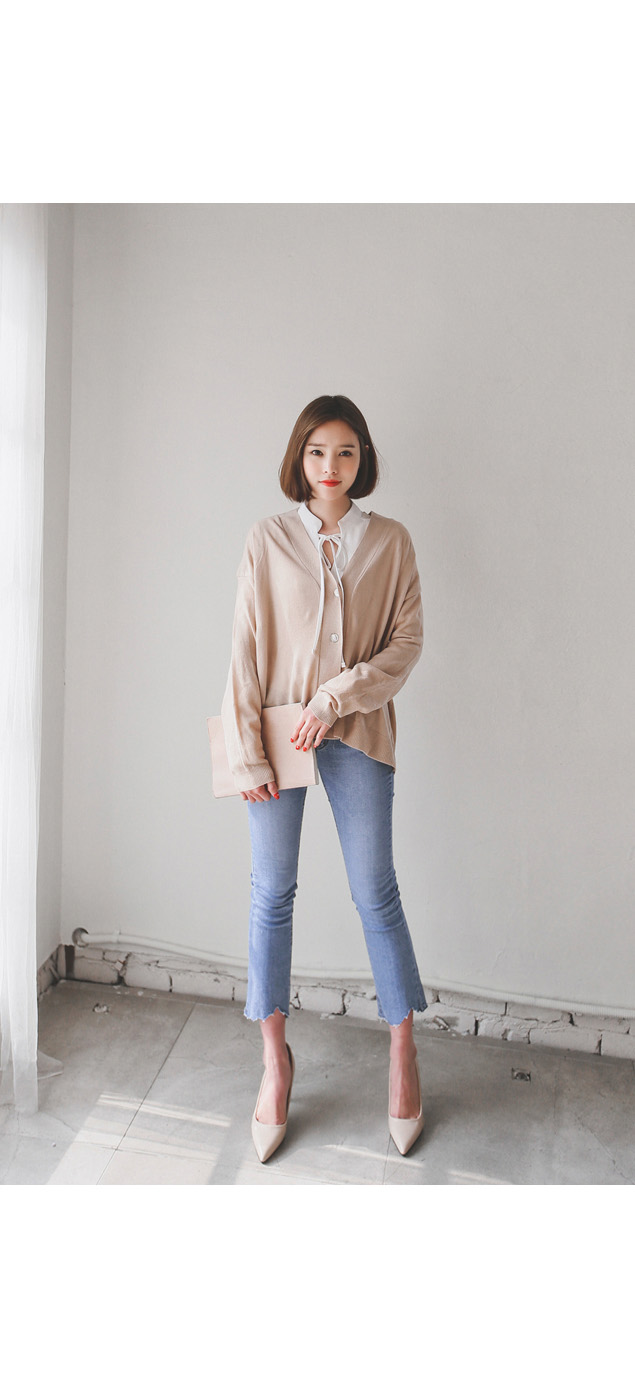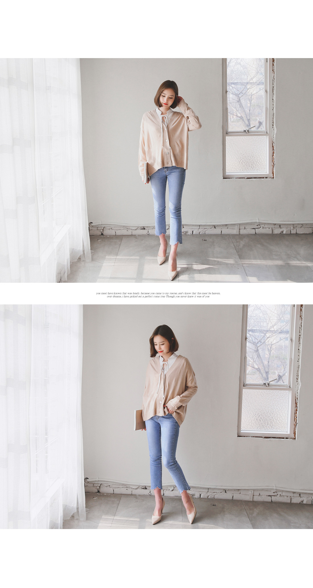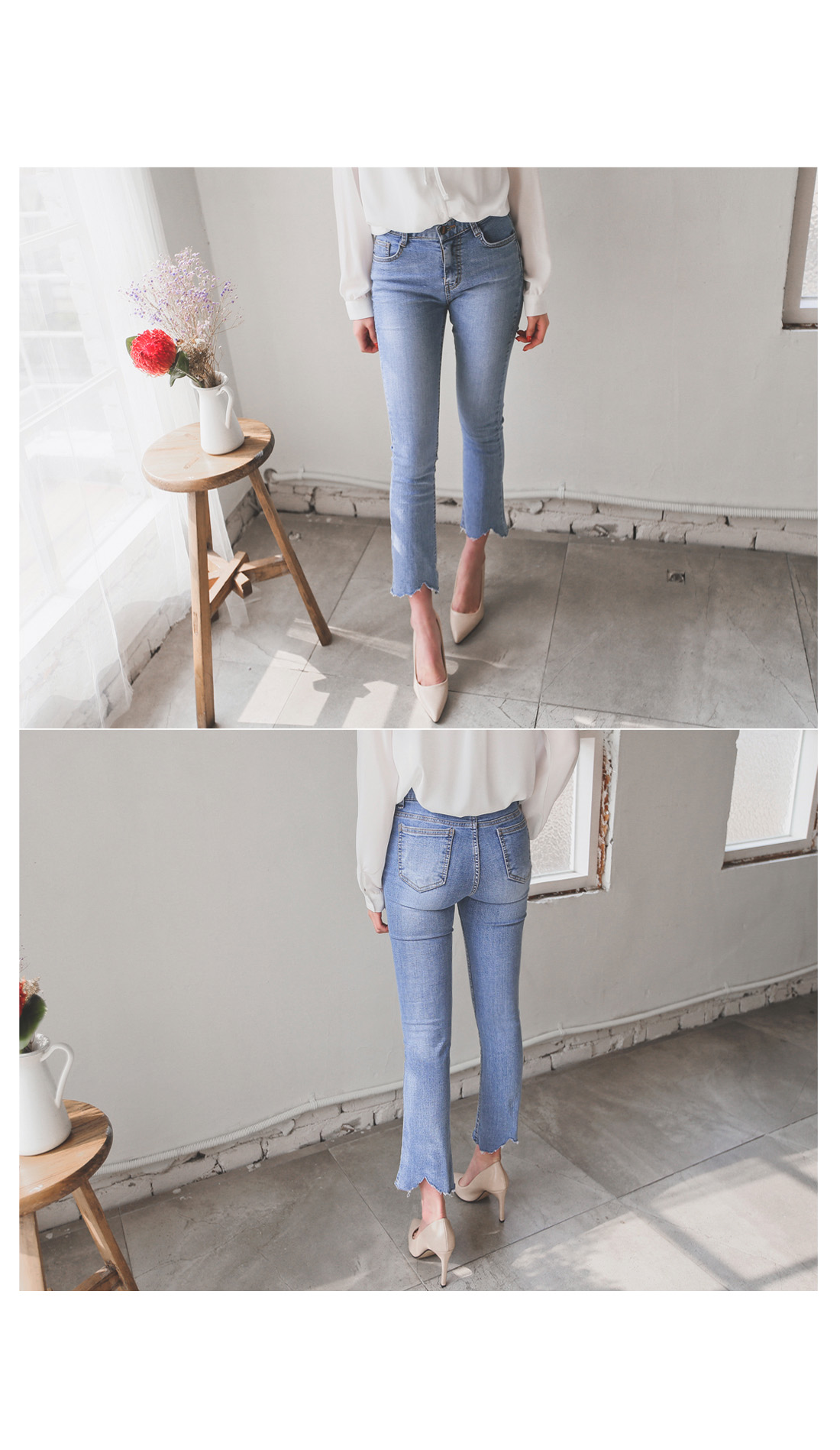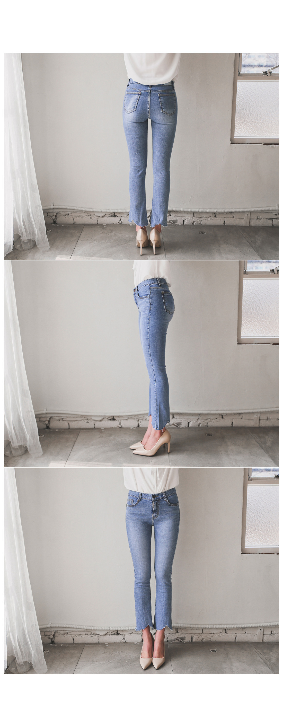# pr8197 밑단엣지 컷팅슬림데님팬츠