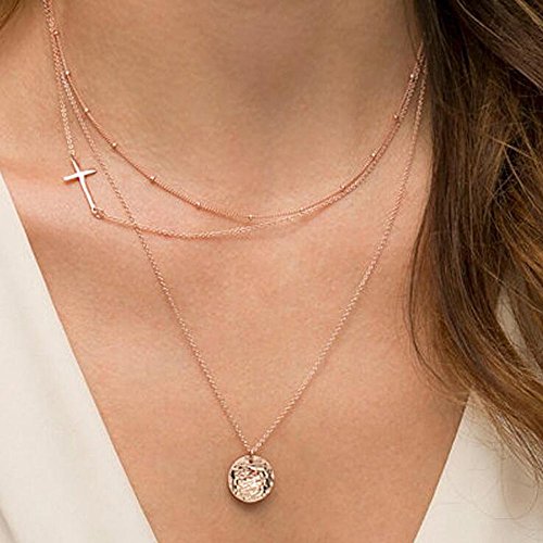 A&C Fashion Bohemia 3 Layered Coin and Cross Pendant Necklace Jewelry for Women. Unique Alloy Torque for Girl.