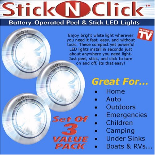 STICK N CLICK 1 PC LED LIGHTS PEEL AND STICK 3 LIGHTS IN EACH PACK AS SEEN ON TV