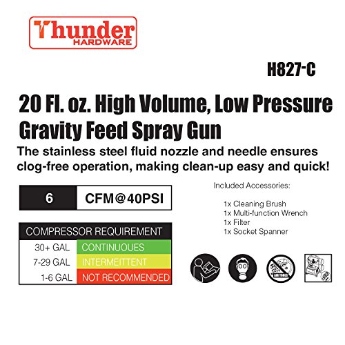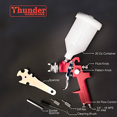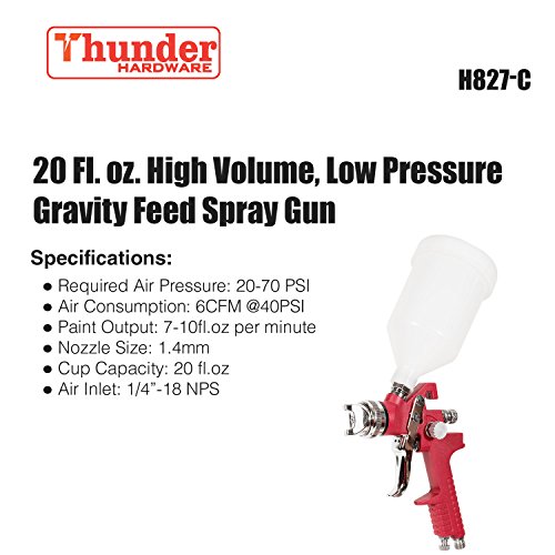 Thunder Hardware High Volume Low Pressure Gravity Feed Spray Gun, 20 oz