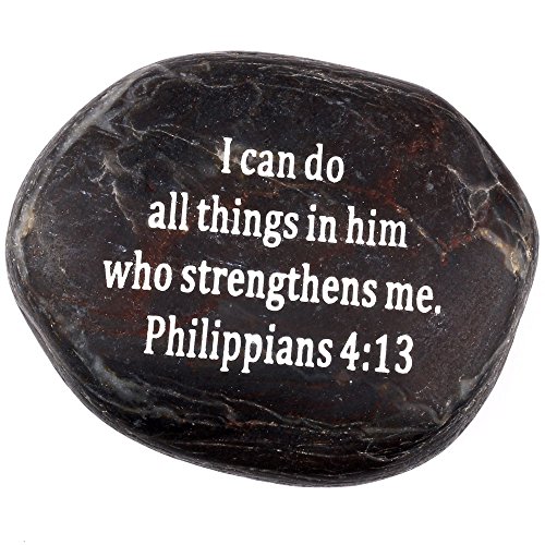 Engraved Inspirational Scripture Biblical Black Stones collection - Stone IV : Philippians 4:13 : " I can do all things in him who strengthens me. "