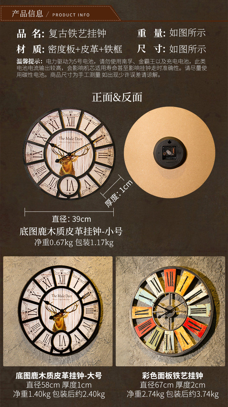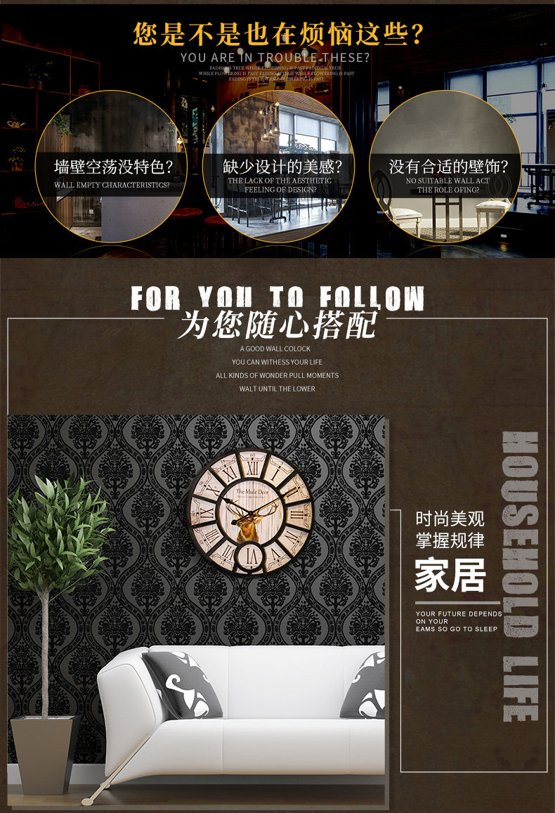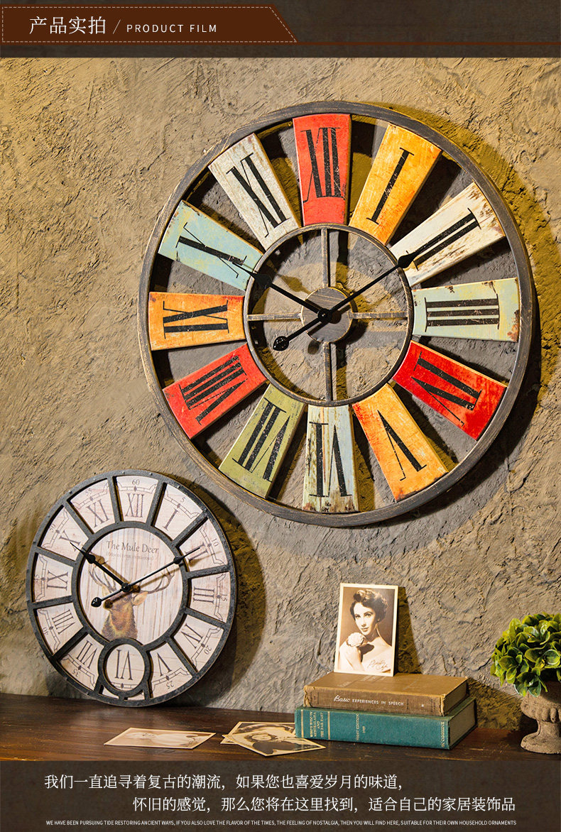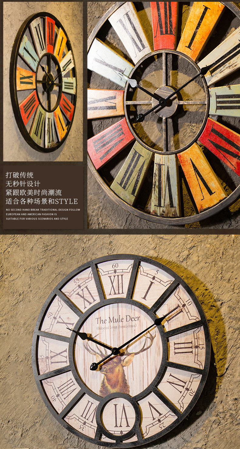 󰄬复古北欧个性壁挂客厅卧室创意挂钟酒吧服装店奶茶店墙上时钟挂件