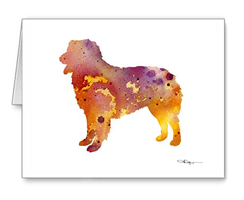-. Feature : "Australian Shepherd" artwork by watercolor artist DJ Rogers. / Note card size is 4.25 x 5.5 inches / Matching white envelopes included. / Note cards are blank inside for your personal message. / Suitable for framing.