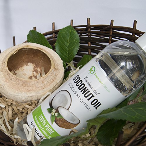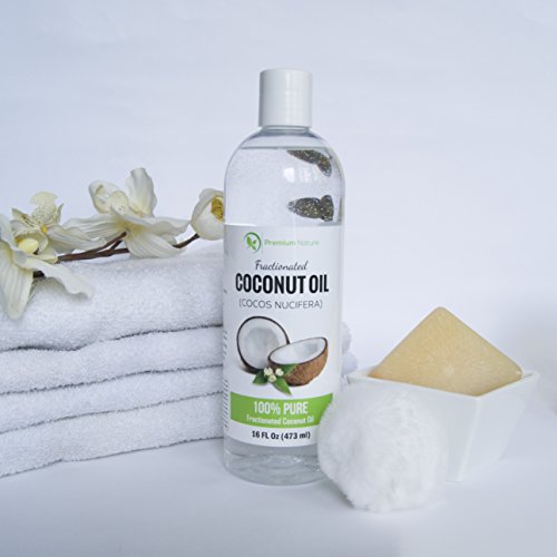 100% PURE & NATURAL FRACTIONATED COCONUT OIL: This Coconut Oil moisturizer is 100% natural and made to suit even the most sensitive of skin types. It does not aggravate any pre-existing skin conditions. NUMEROUS MULTIPURPOSE USES: Coconut Oil can be made into special receipes to provide the best Aromatherapy sessions. You can mix our oil with other oils to make the perfect massage oils as well HELPS HAIR GROW LONGER & STRONGER: Our special brand of coconut oil contains a wonderful balance of saturated fats that helps hair grow in longer_ thicker and stronger than ever! SMOOTHER SKIN: Coconut Oil also has amazing properties that will penetrate deep into your skin to make it super smooth with no greasy feeling ODORLESS & COLORLESS: Unlike a lot of the moisturizers on the market_ our Coconut Oil is odorless and doesn``t stain because it is colorless. Unlike other coconut oil brands Premium Nature Fractionated Coconut Oil doesn``t become solid and has a much_ much longer shelf life.