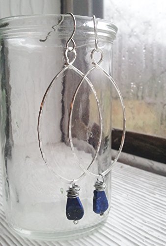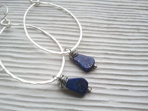 -. Title : silver large hammered hoops with wire wrapped lapis stones