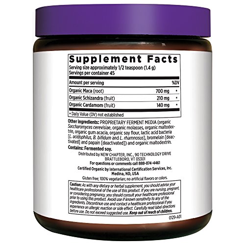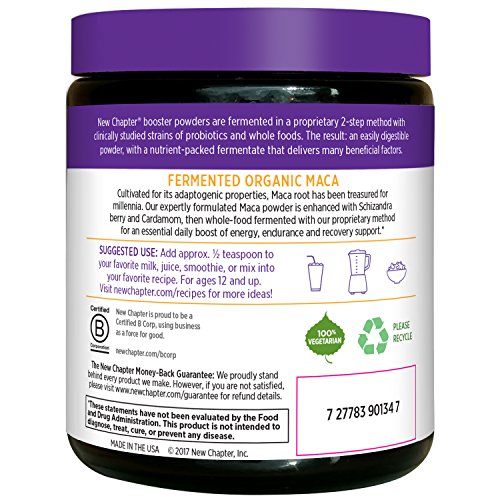 Boost your daily smoothie with the adaptogenic power of Maca root. NEW Fermented Maca Booster Powder helps you get the most from this outstanding superfood from Peru. New Chapter's premium quality, Non-GMO, USDA organic Maca powder can boost your energy drinks, post-workout recovery drinks, and support endurance and stamina.* Following our principles of acknowledging both science and tradition, this Booster Powder is uniquely fermented so it's easily digestible, and blended with complementary Schizandra and Cardamom.
