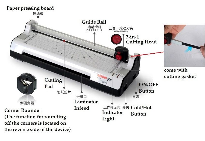 Product Description of 5-in-1 A4/A3 SOONYE Laminator Paper Photo Cutter Trimmer Corner Rounder: