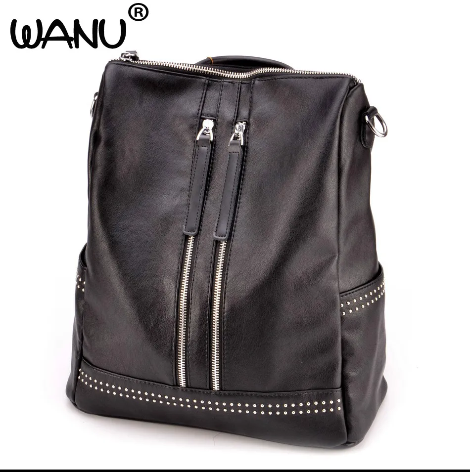 WANU 2017 Brand Soft Leather Women Backpack Casual School Bags for Teenagers Girls High Quality Female Travel Back Pack
