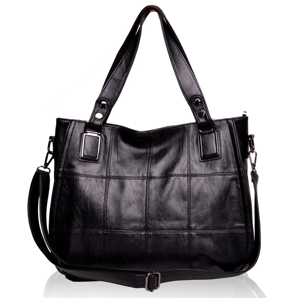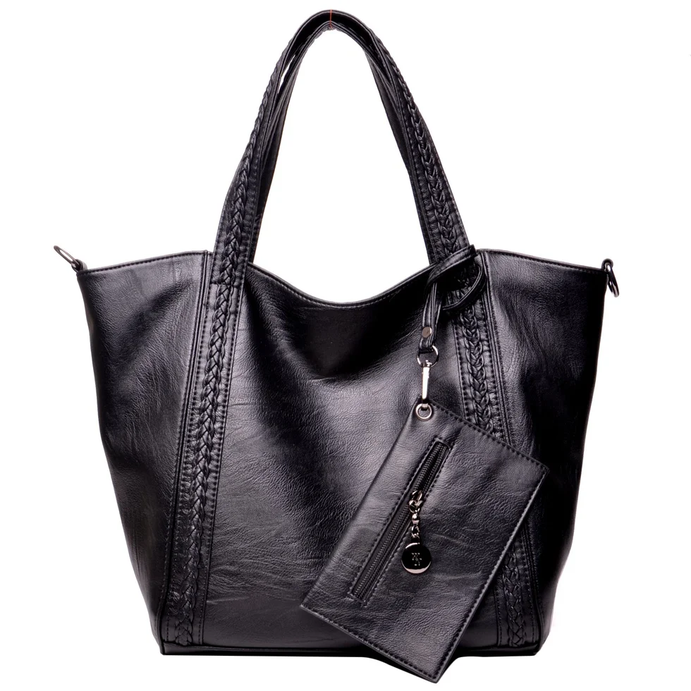 WANU Leather Luxury Handbags big black casual women bag fashion women composite bag