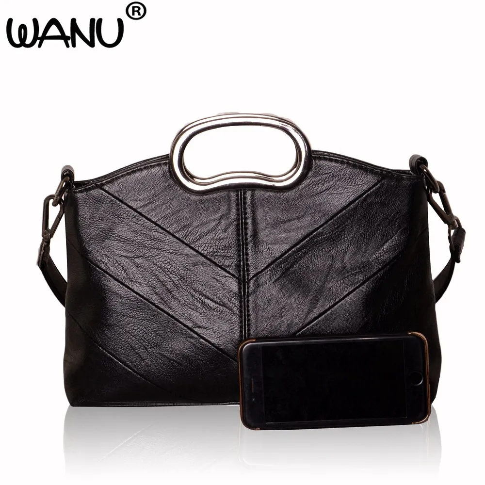 WANU 2017 leather women's casual totes sheepskin shoulder bags big black female crossbody bag in bag as gift for mother wife