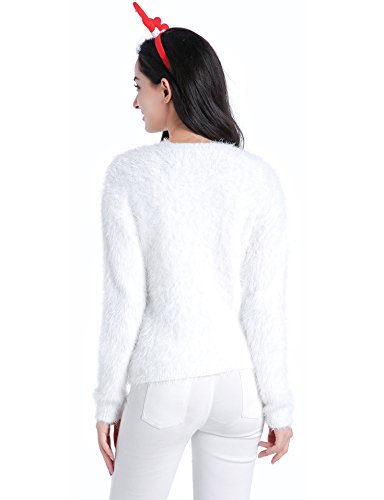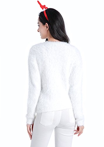 v28 Ugly Christmas Sweater, Women Ladies Girl Xmas Shining Santa Penguin Jumper (Large, ShiningSanta White)