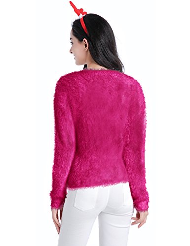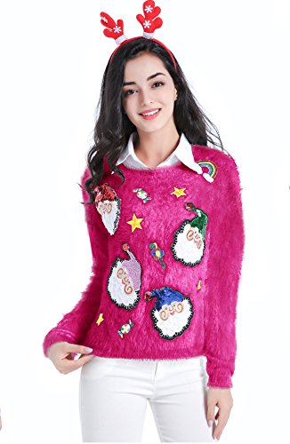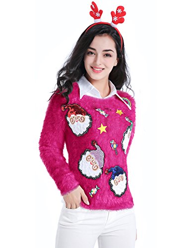 v28 Ugly Christmas Sweater, Women Ladies Girl Xmas Shining Santa Penguin Jumper (X-Large, ShiningSanta HotPink)