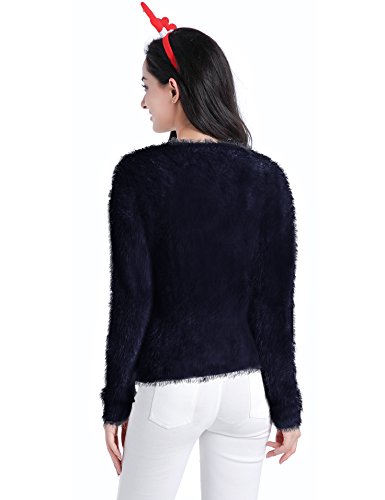 v28 Ugly Christmas Sweater, Women Ladies Girl Xmas Shining Santa Penguin Jumper (Large, ShiningSanta Navy)